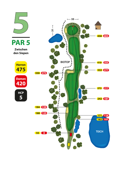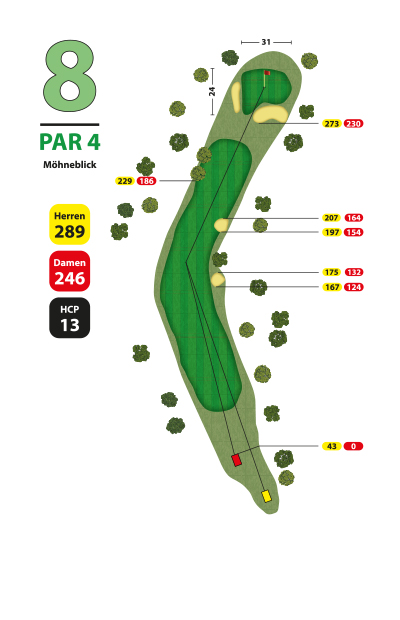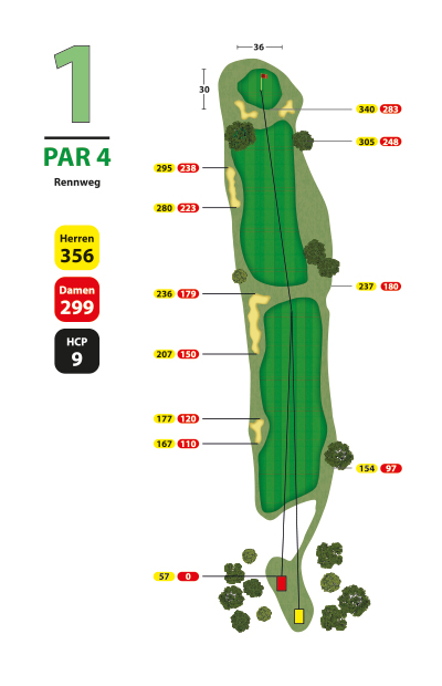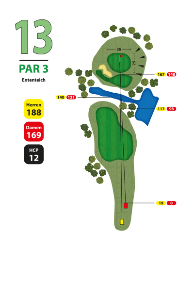 Die breiten, gepflegten Fairways verzeihen so manchen Spielfehler. Romantische Teiche, Waldstücke zwischen den Bahnen und tiefe Topfbunker können allerdings auch leicht eine Gefahr für die Chance auf ein Par sein. Die hügelige Landschaft verlangt dann und wann Ihre Kondition.
